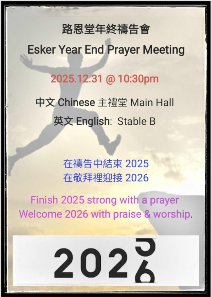 Details for Esker House Combined Christmas Service and New Year Eve Prayer Meeting as below: